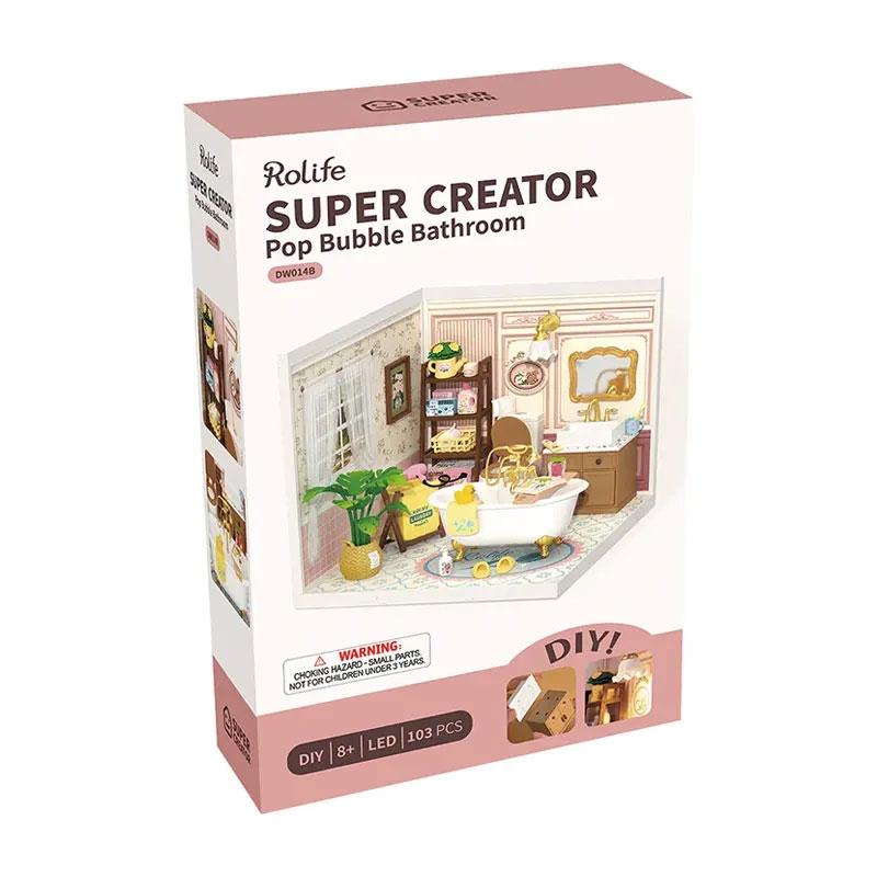 - The Rolife 3D Plastic Puzzles Pop Bubble Bathroom DIY Miniature will give you the complete accessories and decorations to create an adorable, girly-look bathroom. Also, it gives a satisfying and creative experience that will capture the essence of your ideal bathroom style and setup at home.