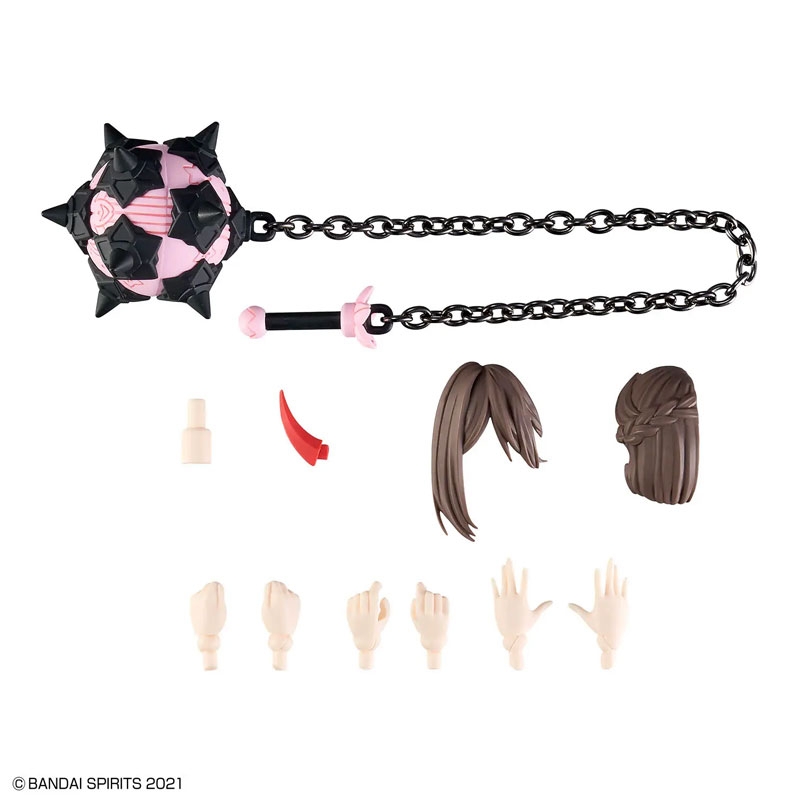Shuremi joins Bandai's "30MS (30 Minutes Sisters)" figure-kit series! Parts are included for her body, three interchangeable tampo-printed faces, and weapons. The hairstyle parts can be divided into two different colors, and she can be displayed with or without horns by parts replacement. Parts of the costume are reproduced with a hole design, and the flame effect on her head is made of clear parts. Create your own sister by combining her with previously released "30MS" face parts, hairstyle parts, and body parts! This figure uses the same 3mm joints as other items in the "30 Minutes" series, so you can use parts from "30 Minutes Missions" items too. Place your order today!