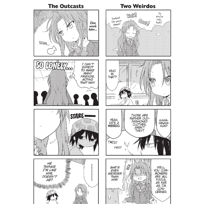 There’s rich girls, and then there’s Haru–an ultra-rich heiress with more money than you could spend in your lifetime. She may be loaded, but she has to go to high school like everyone else–and when you see everyone there as mere commoners, it might be just a little difficult to make friends. There’s only one person who really hits it off with her: Tsurezure, an aloof hipster with a super-weird fashion sense. It’s an unlikely friendship between oddballs in this heartwarming comedy about a couple of misfits, their high school class, and one long-suffering butler.