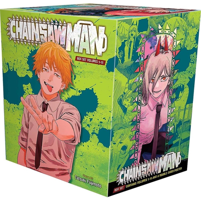 The rip-roaring first arc of Chainsaw Man, all in one jaw-dropping box set! This box set contains the first 11 volumes of the global hit Chainsaw Man as well as an exclusive double-sided full-color poster.
