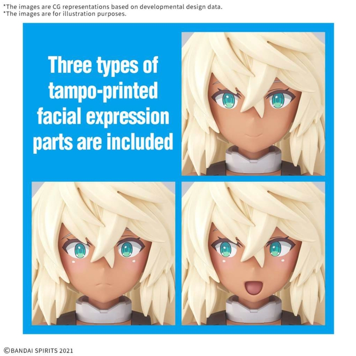 Сестие е най-новият член на серията фигурки-конструктори "30MS (30 Minutes Sisters)" на Bandai! Частите на плъзгачите са подредени с оглед на лекотата на сглобяване и работния процес, така че сглобяването на комплекта ще бъде изключително лесно! Включена е част за лента за глава, а трите ѝ взаимозаменяеми части на лицето - нормална, изненадана и усмихната - са отпечатани с тампопечат. Тазобедрените стави на корема имат механизъм, който предотвратява отделянето им при движение на краката по време на позиране; големият нож има сгъваем механизъм в дръжката. Включени са много пръстеновидни съединителни части, които могат да бъдат прикрепени към ръцете и краката ѝ. Създайте своя собствена сестра, като я комбинирате с вече издадени части за лице, прическа и части за тяло от "30MS"! Тази фигурка използва същите 3 мм съединителни елементи като другите артикули от серията "30 Minutes", така че можете да използвате и части от артикулите "30 Minutes Missions". Направете поръчката си още днес!