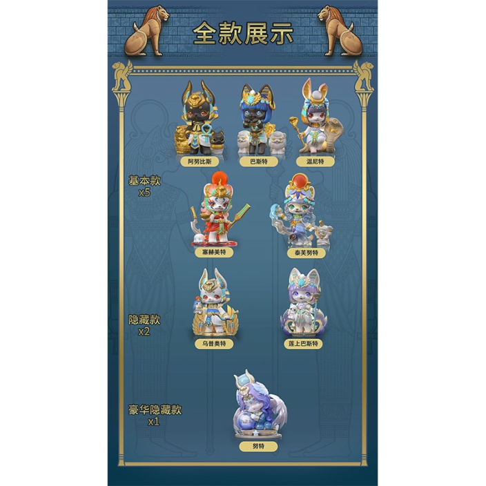 Производителите на дизайнерски играчки ToysComic и BlackBox си сътрудничат, за да ни представят най-новата си линия от „Aaru Kindergarten Series“ – сладък комплект фигурки за търговия с мотив на египетски бог! Тези детайлни фигурки съчетават чувство за мистерия с невероятно ниво на сладост, с очарователните си изражения и пози! Има пет фигурки за колекциониране и търговия, плюс три тайни фигурки; те са произволно опаковани в кутии от по шест. Поръчайте своята още днес!