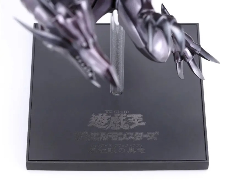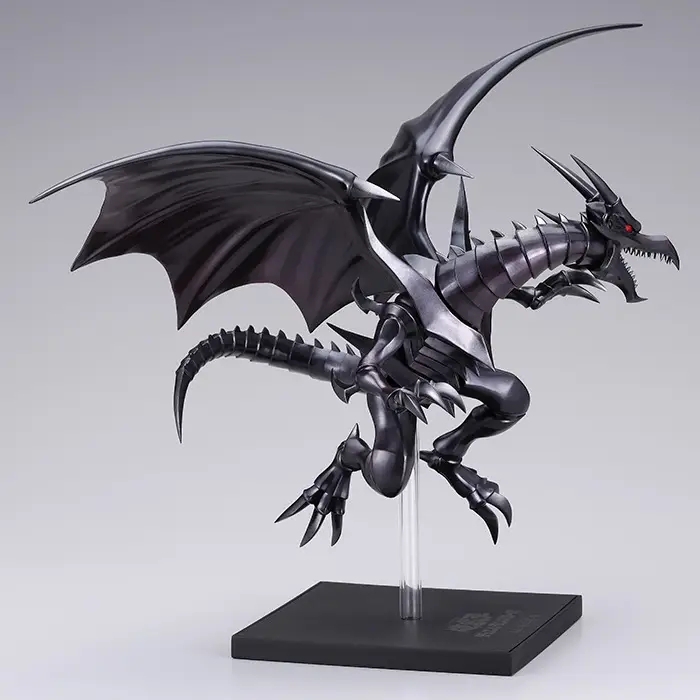 Тази PVC статуя представя Red-Eyes Black Dragon в класическа, внушителна поза, която подчертава суровата му мощ и митично присъствие. Скулптурата акцентира върху острите форми на бронята, разперените крила и заплашителния силует, които феновете на Yu-Gi-Oh! разпознават мигновено.