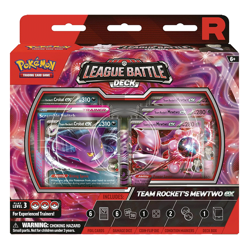 Навлез в състезателната сцена с Pokemon TCG – League Battle Deck – Team Rocket's Mewtwo EX, готов за игра тесте със силен стратегически фокус. Турнирно ориентиран дек, с Team Rocket's Mewtwo EX, оптимизиран набор от карти, и подходящ за League игра и надграждане.