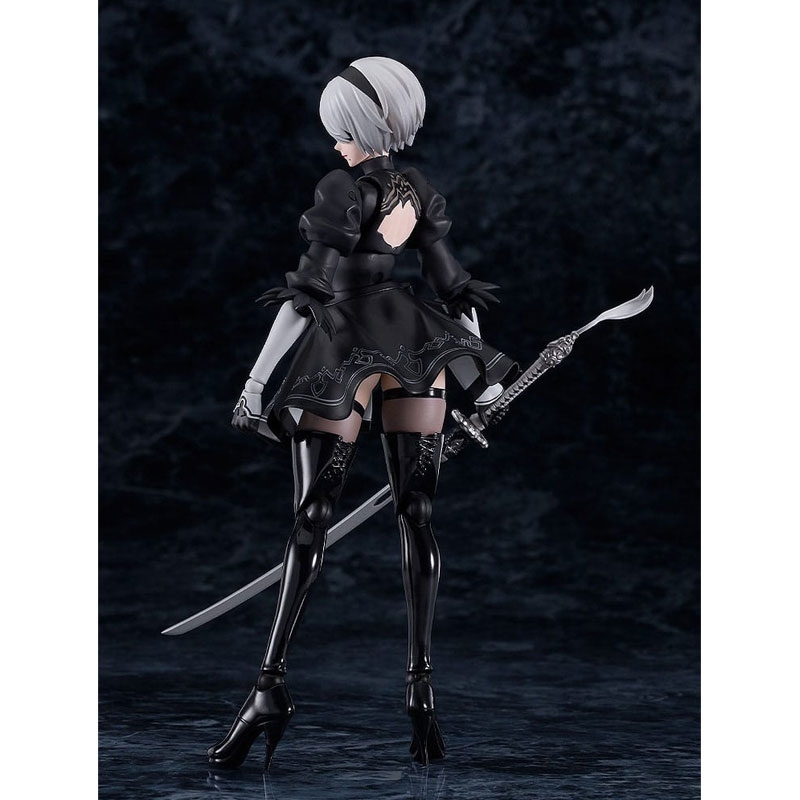 Nier:Automata Ver1.1a Figma Action Figure 2B (YoRHa No.2 Type B) 16 cm е висококачествена подвижна фигурка, вдъхновена от аниме адаптацията. Официална Figma фигурка, множество точки на артикулация, сменяеми лица и аксесоари, и PVC & ABS материали с високо качество.