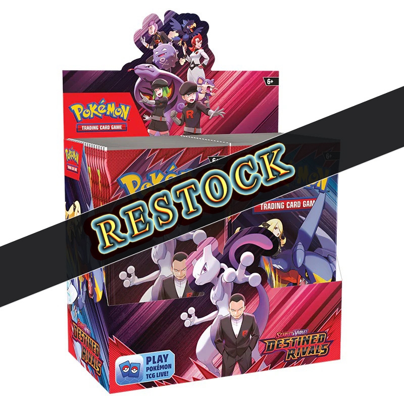 Scarlet & Violet—Destined Rivals e изданието, което бележи завръщането на популярната Trainer’s Pokémon механика, но с нова изненада - в микса от герои ще се включат небезизвестния Team Rocket - група от злодеи в покемон вселената. Играчите ще могат да избират, на чия страна да застанат и с кой да обединят сили - героичната двойка Ethan и Ho-Oh ex или Cynthia и Garchomp ex, или да се присъединят към дяволити приключения с Team Rocket и техният Pokémon, като Mewtwo ex, под командването на Giovanni.